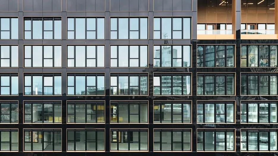 Bei Lösungen wie der Schüco AF VC Fassade kommen hierfür Doppelglasmodule zum Einsatz. Eine Anpassung der Modulgrößen an das Fassadenraster ermöglicht eine gleichmäßige und harmonische Flächenwirkung.