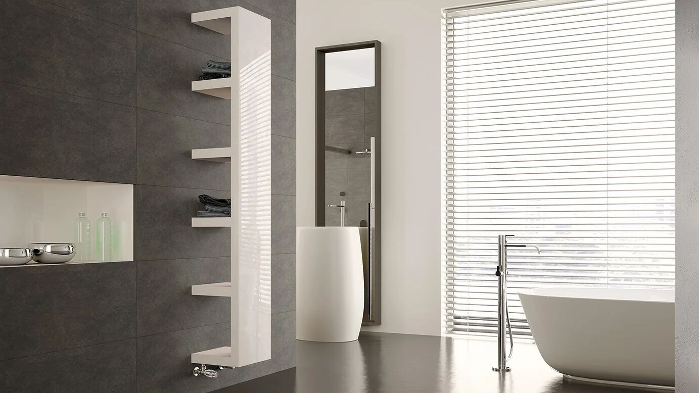 Ein breites Sortiment von puristischen Formen bis hin zu skulpturalen Modellen wie Polygon stehen zur Auswahl. Optional mit integrierter LED-Beleuchtung und als Elektro-Heizkörper mit WiFi-Smart-Funktion.