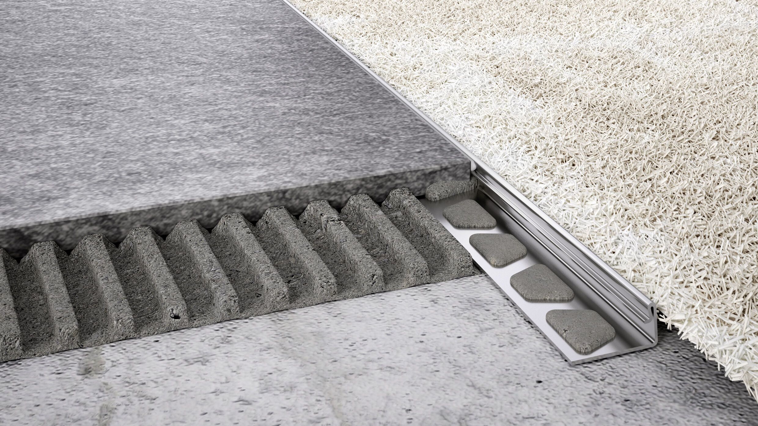 Schlüter®-Profile als Fliesenabschluss-, Kanten-, Übergangs-, Träger- und Dekorprofile aus Aluminium, Edelstahl und Messing für Fliesenabschlüsse und Übergänge in Bodenbelägen.