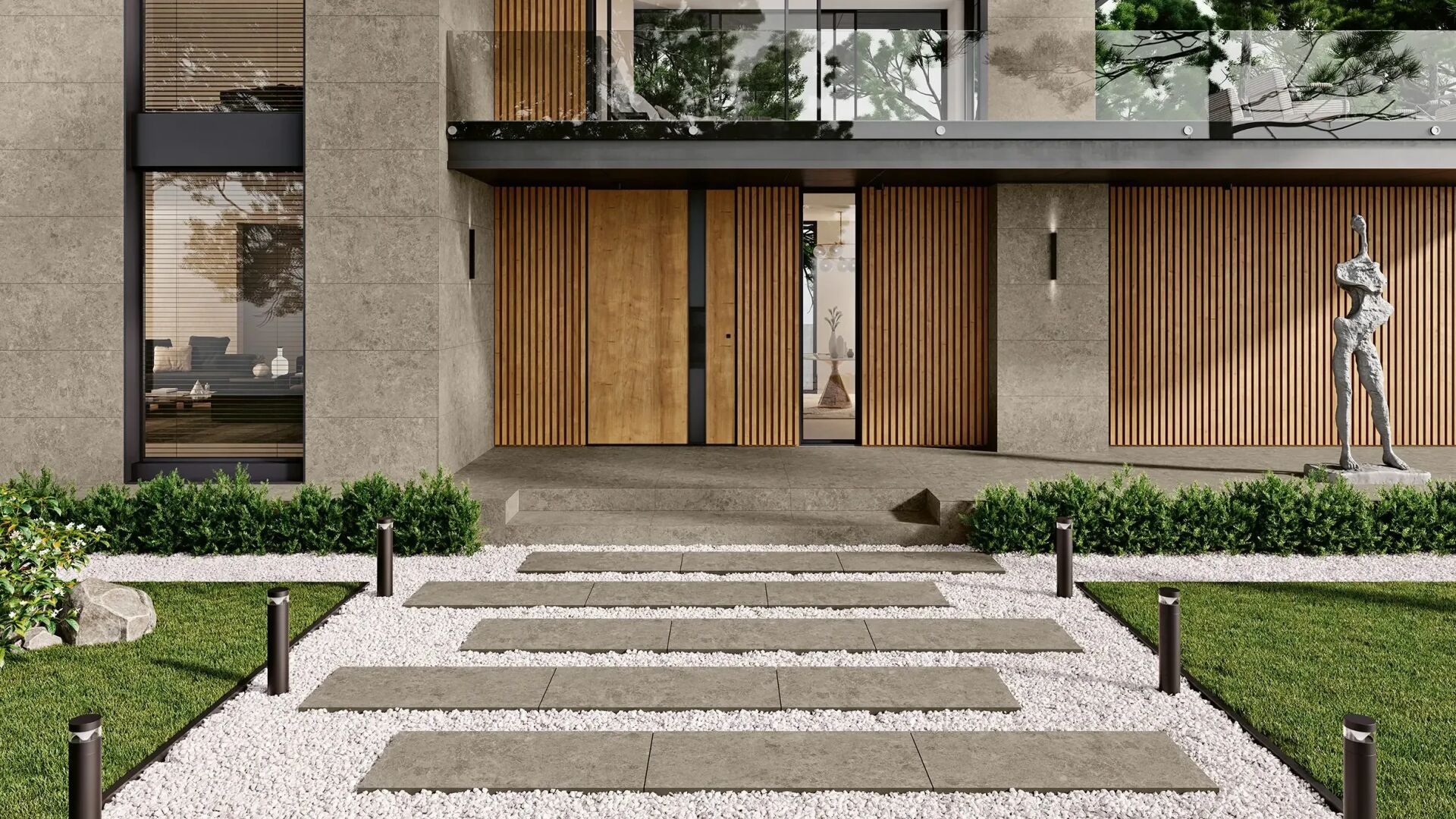 Die Kollektion Skanden bietet Formate von 30×60 bis 120×120 cm sowie die Oberflächen Keragrip und Lappata mit erhöhter Rutschhemmung. Das 2 cm starke Feinsteinzeug in den Formaten 60×120 cm und 90×90 cm ist für die Gestaltung der Übergänge zwischen Innen- und Außenbereichen geeignet.